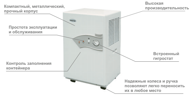 DH 721 - мобильные устройства, которые находят применение в различного рода помещениях. Использование этого типа конденсаторных осушителей может ускорить проведение многих отделочных и ремонтных работ.
